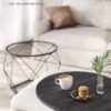 - Ideal for compact spaces: The larger table measures 19.7″ diameter × 15.7″ height, while the smaller one is 15.7″ diameter × 14.2″ height. Their dimensions allow flexibility in arrangement and easy placement even in tight corners.
